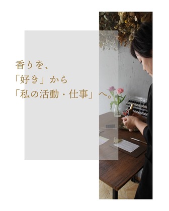 「私の調香室講座」は、 誰もが自分らしい活動・仕事のかたちを「調香」を通して叶えていく実践型の講座です。
