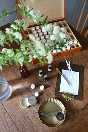 材料をを調合して、スキンケアを作ることです。」